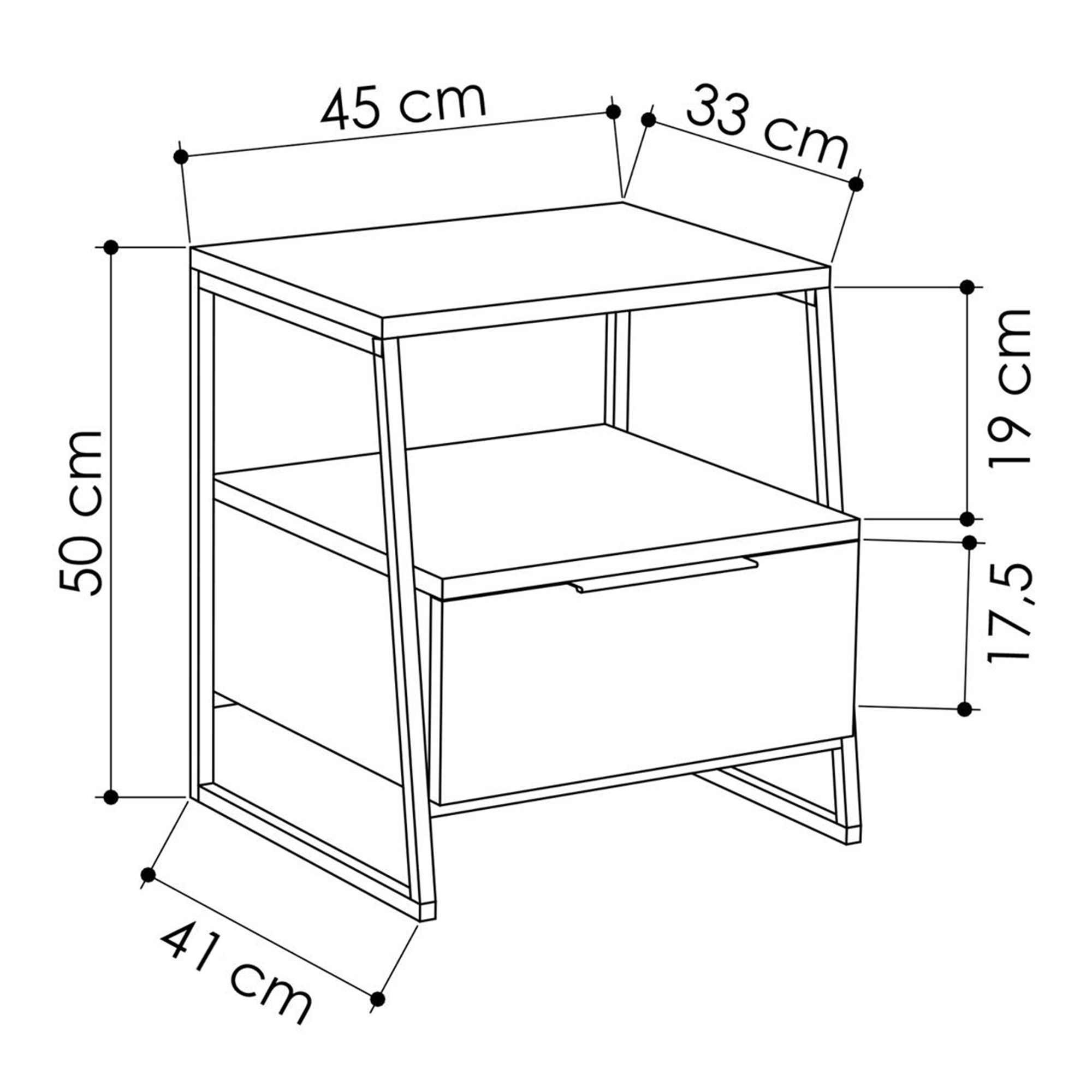 Pal Modern Bedside Table With Drawer White 45cm Wide