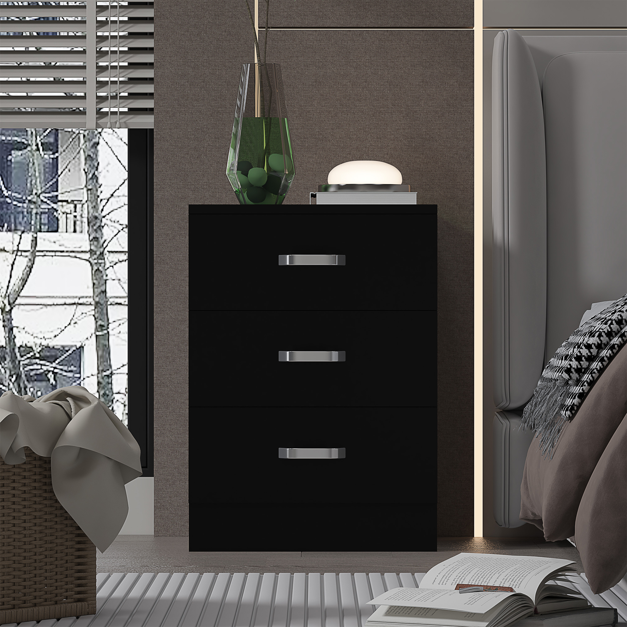 Tunis 3 Drawer Bedside Chest Matt Black
