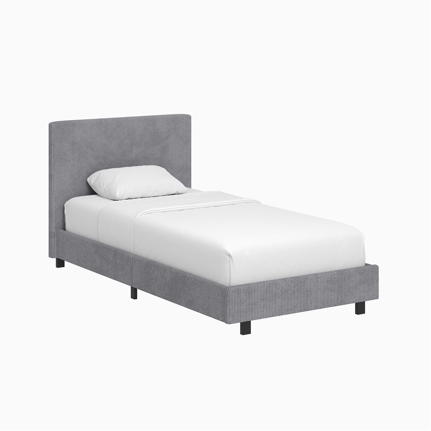 grey-upholstered-single-bed-frame-ribbed-fabric