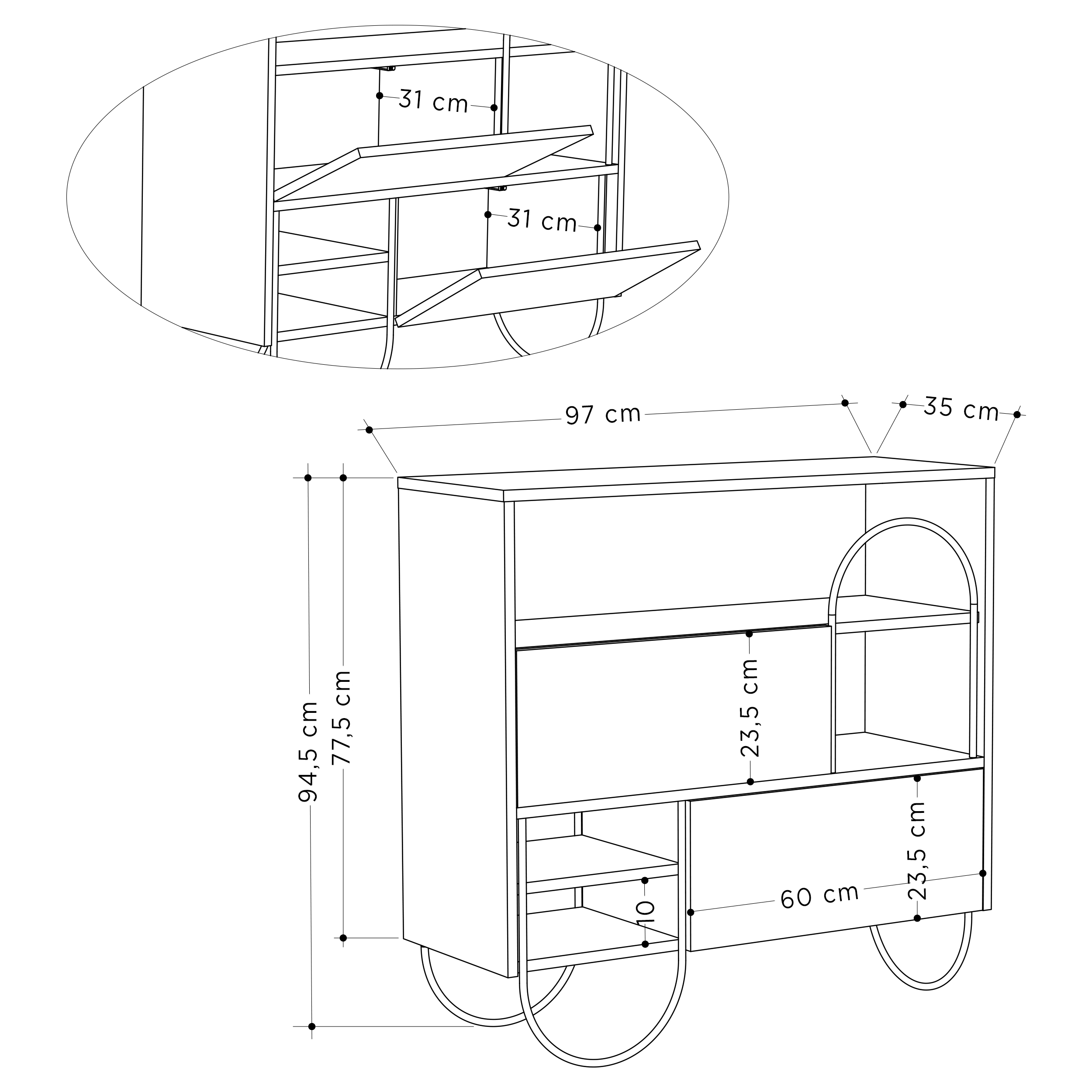 Norfolk Shoe Cabinet Black Marble Effect Dark Oak
