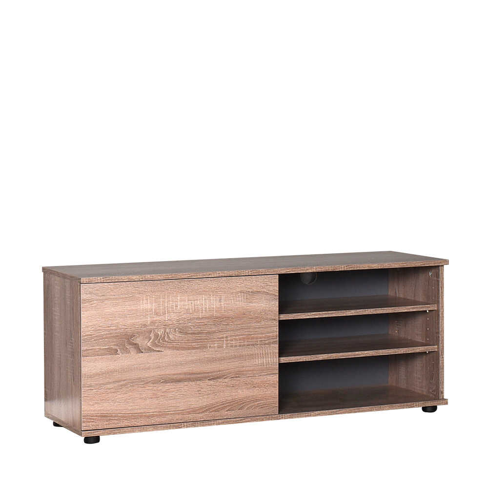124cm Wide TV Unit with Open Shelves and Cupboard in Latte Oak