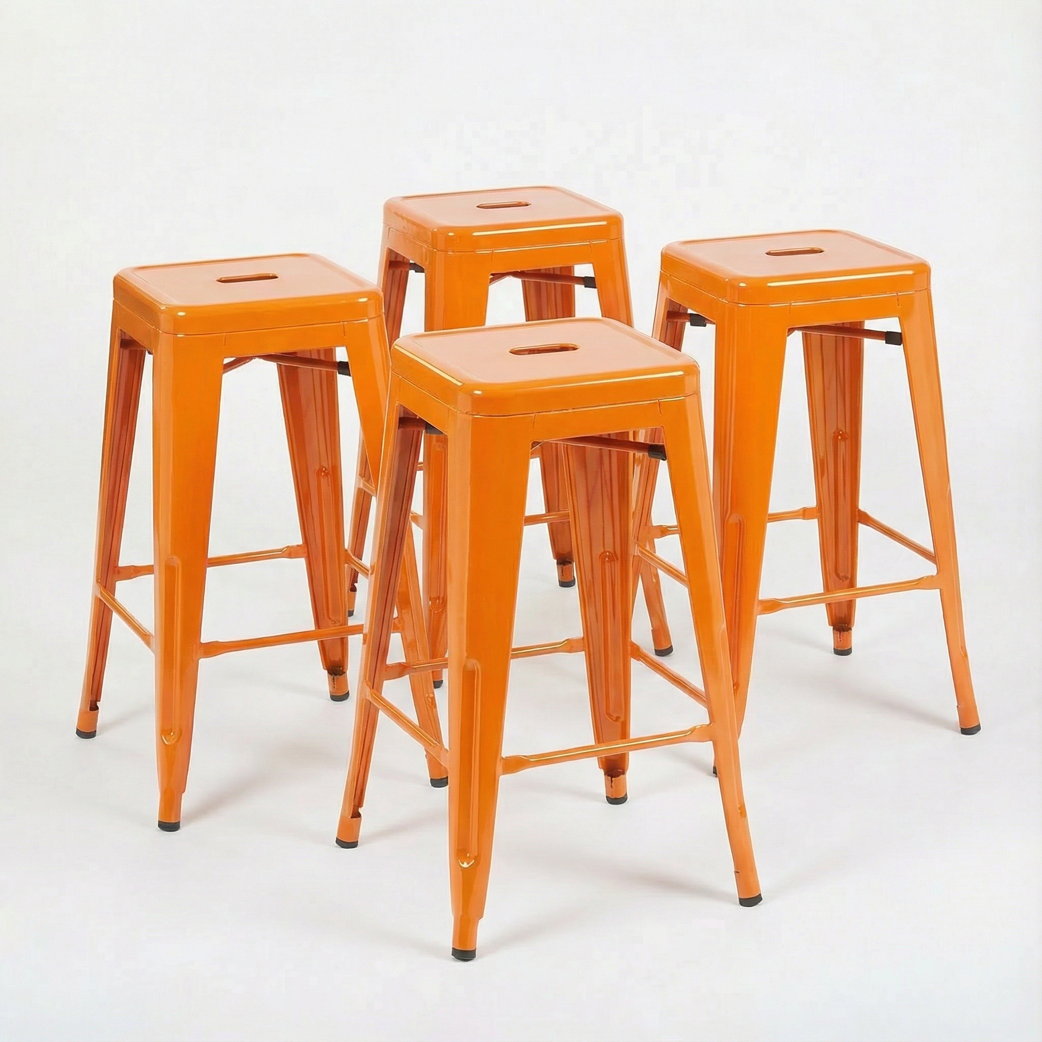 Crafted from strong galvanised metal, each stool is built to withstand regular use while maintaining its refined appearance. The galvanised steel construction provides excellent resistance to wear and corrosion, making these stools a reliable choice for both domestic and light commercial environments. Finished in an elegant orange gloss finish, the stools deliver a contemporary look that effortlessly complements a wide range of interior styles, from industrial and minimalist to modern and urban chic.