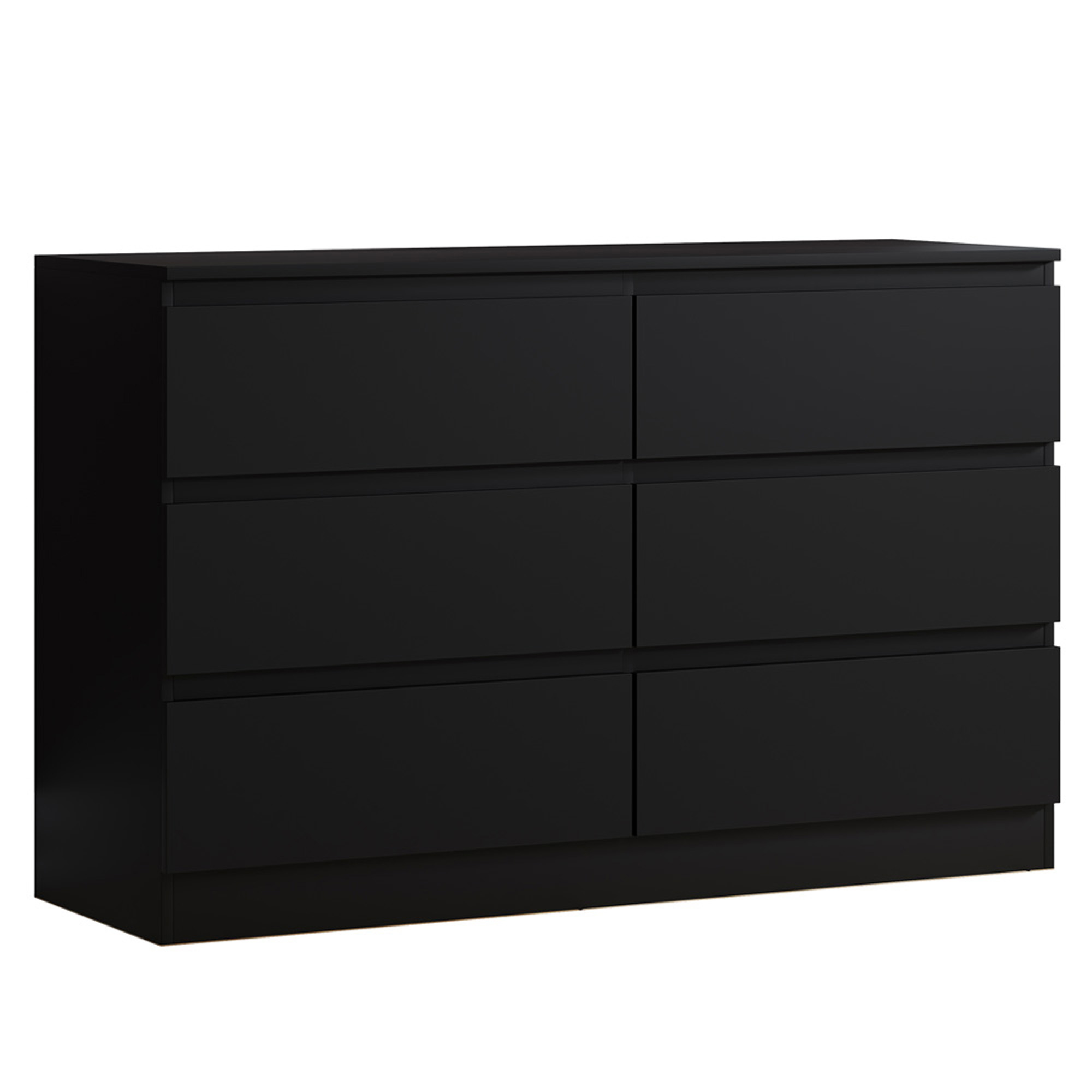 Carlton 6 Drawer Wide 3+3 Chest Of Drawers – Matt Black