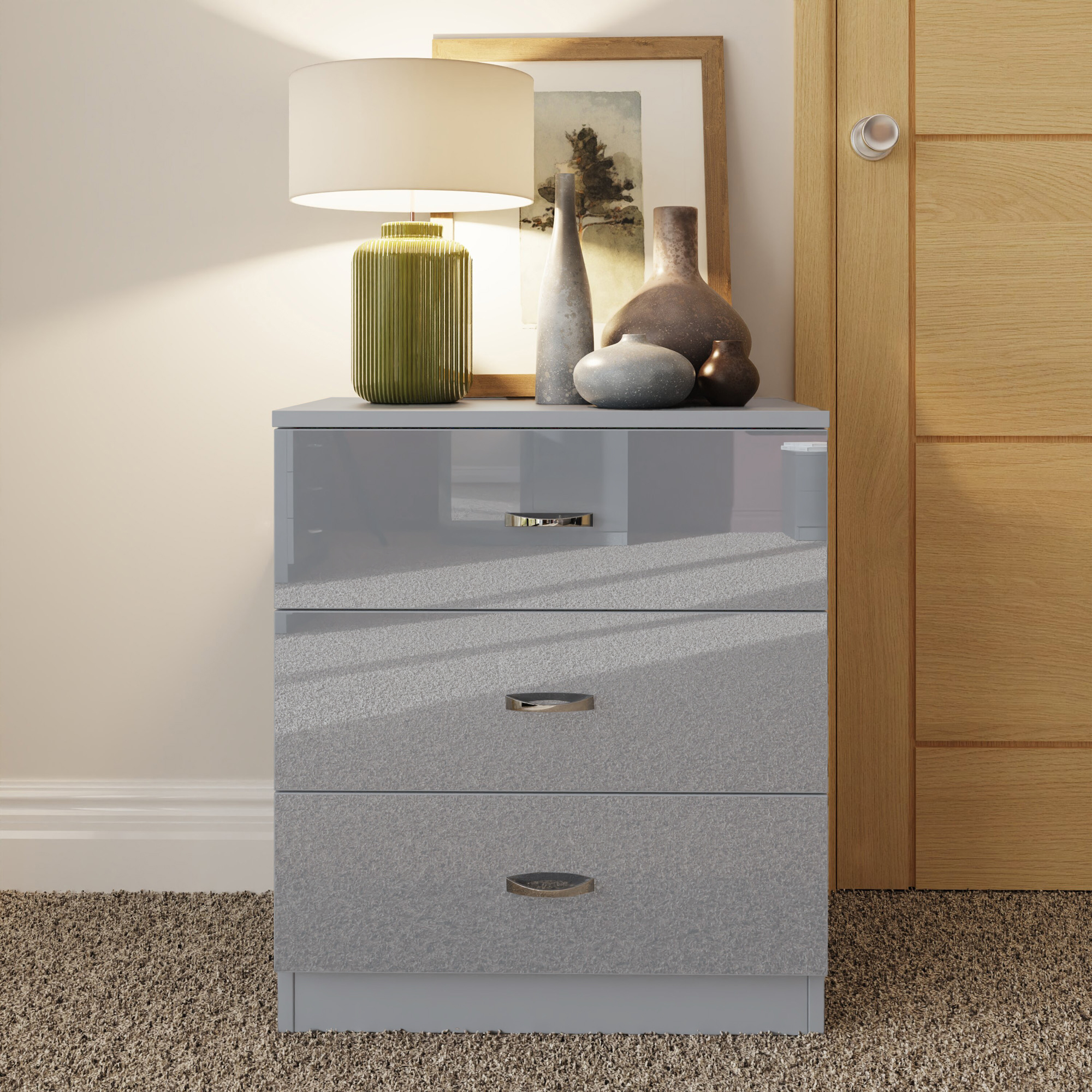 Chilton 3 Drawer Chest Of Drawers – Grey Gloss Front