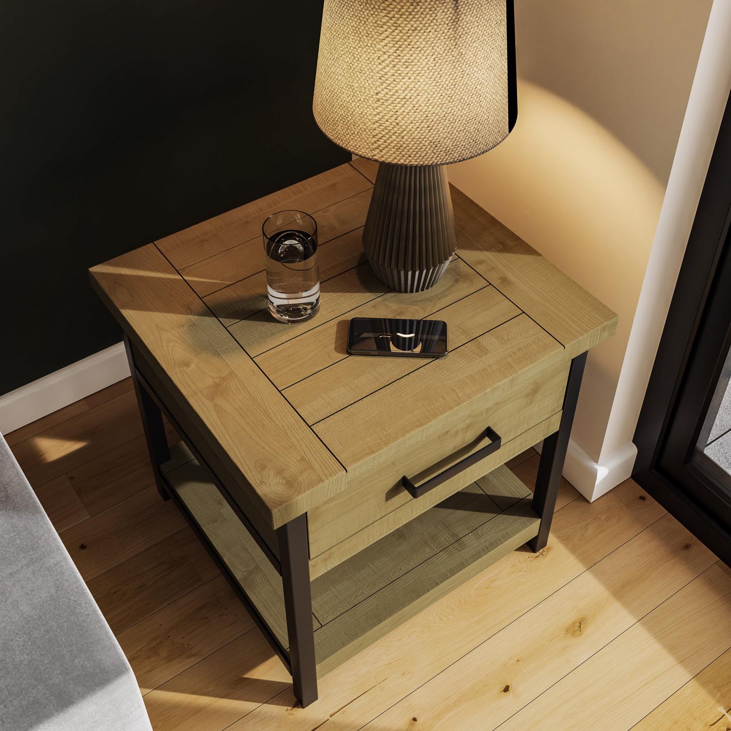 Introducing our Solid Reclaimed Pine Driftwood Modern Side Table, a stylish and functional addition to your living space. Crafted from driftwood lacquered finish pine, this side table showcases the natural beauty of reclaimed wood while incorporating modern industrial-inspired design elements. The side table features a gunmetal grey powder coated quad-bar steel base, adding a contemporary touch to its rustic charm. Inspired by industrial styling with a modern twist, this side table effortlessly combines form and function. The solid construction ensures durability, while the driftwood lacquered finish enhances the unique grain patterns of the pine, creating a visually captivating piece.