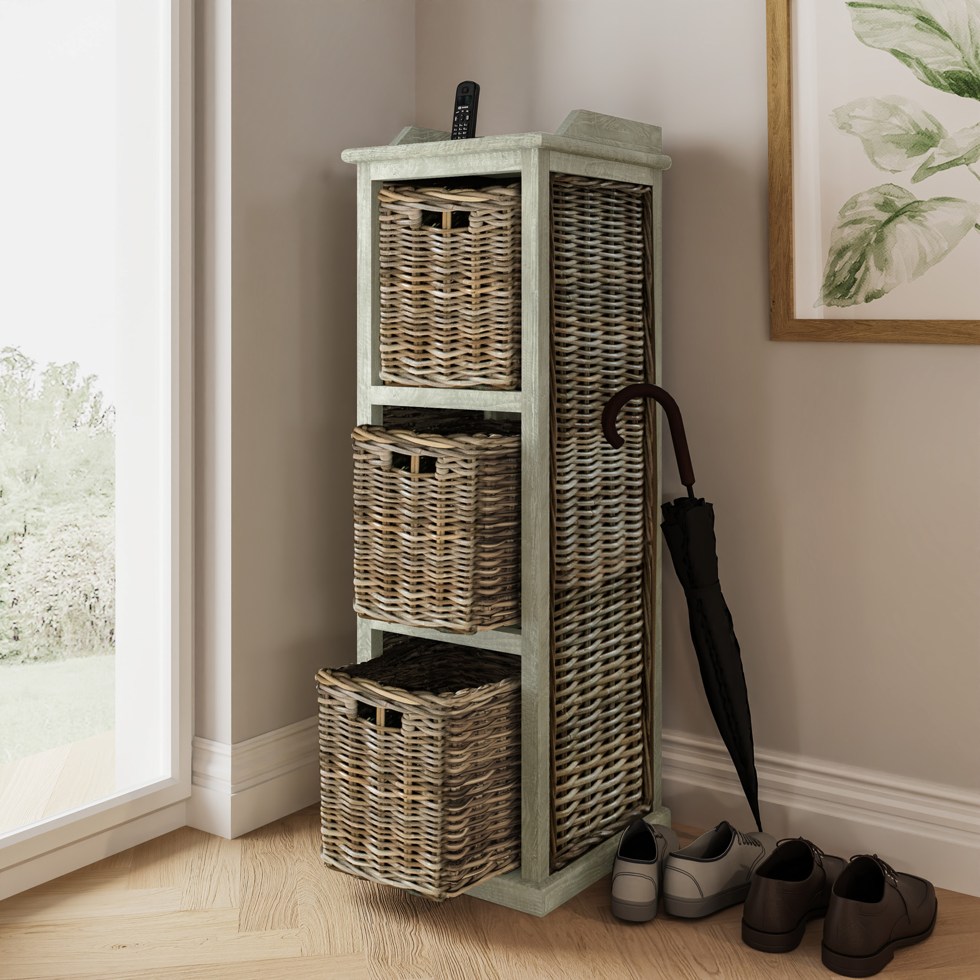 Maya Handmade Kubu Rattan 3 Basket Storage Unit Limewash
