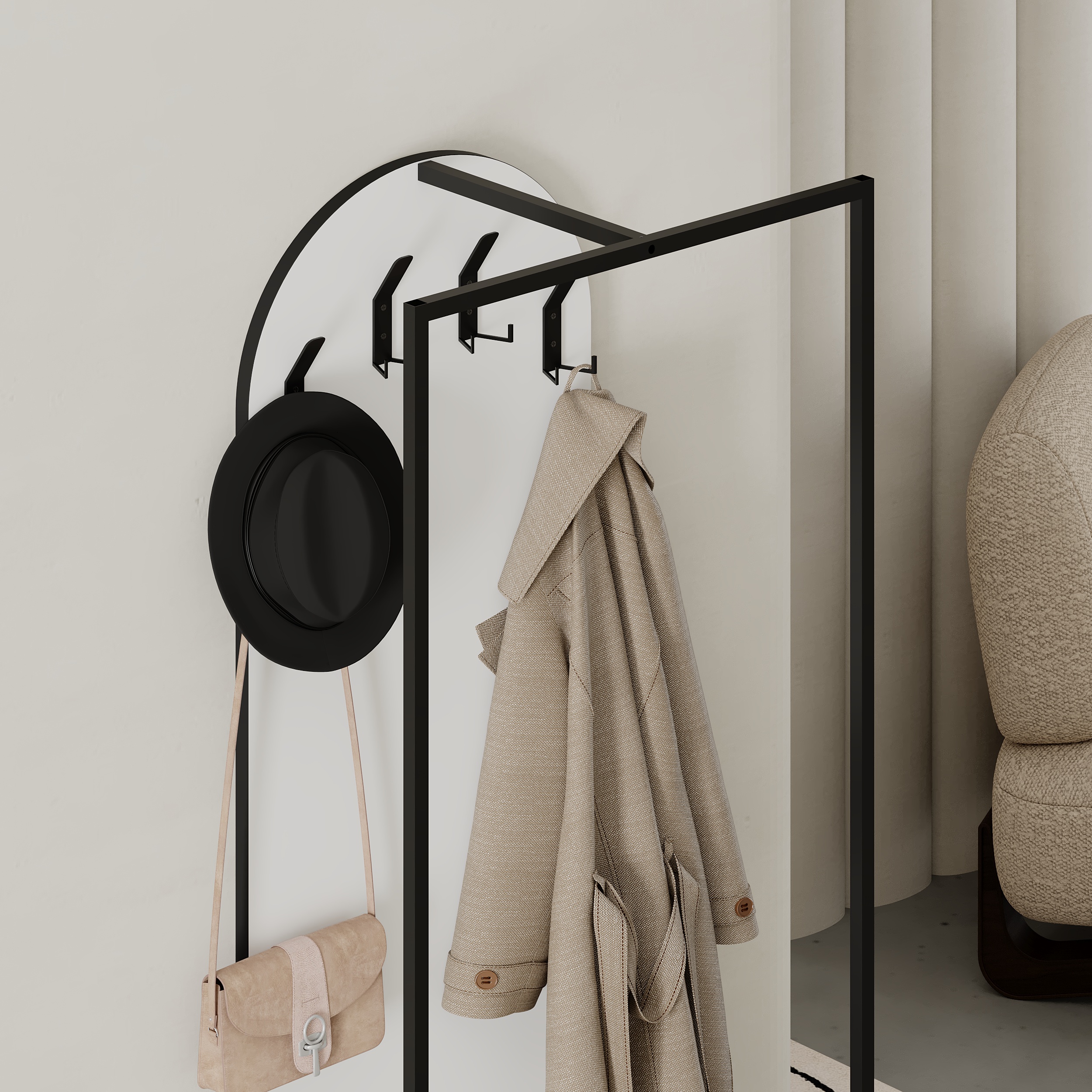 This sleek, flat-pack furniture piece is perfect for any home. Its practical storage solutions and elegant display blend seamlessly with various interior styles. Whether you need a place to organize your shoes or a convenient spot to hang your outerwear, the Modern Archy Hall Stand has you covered. Add this stylish piece to your home for a clutter-free, organized space.