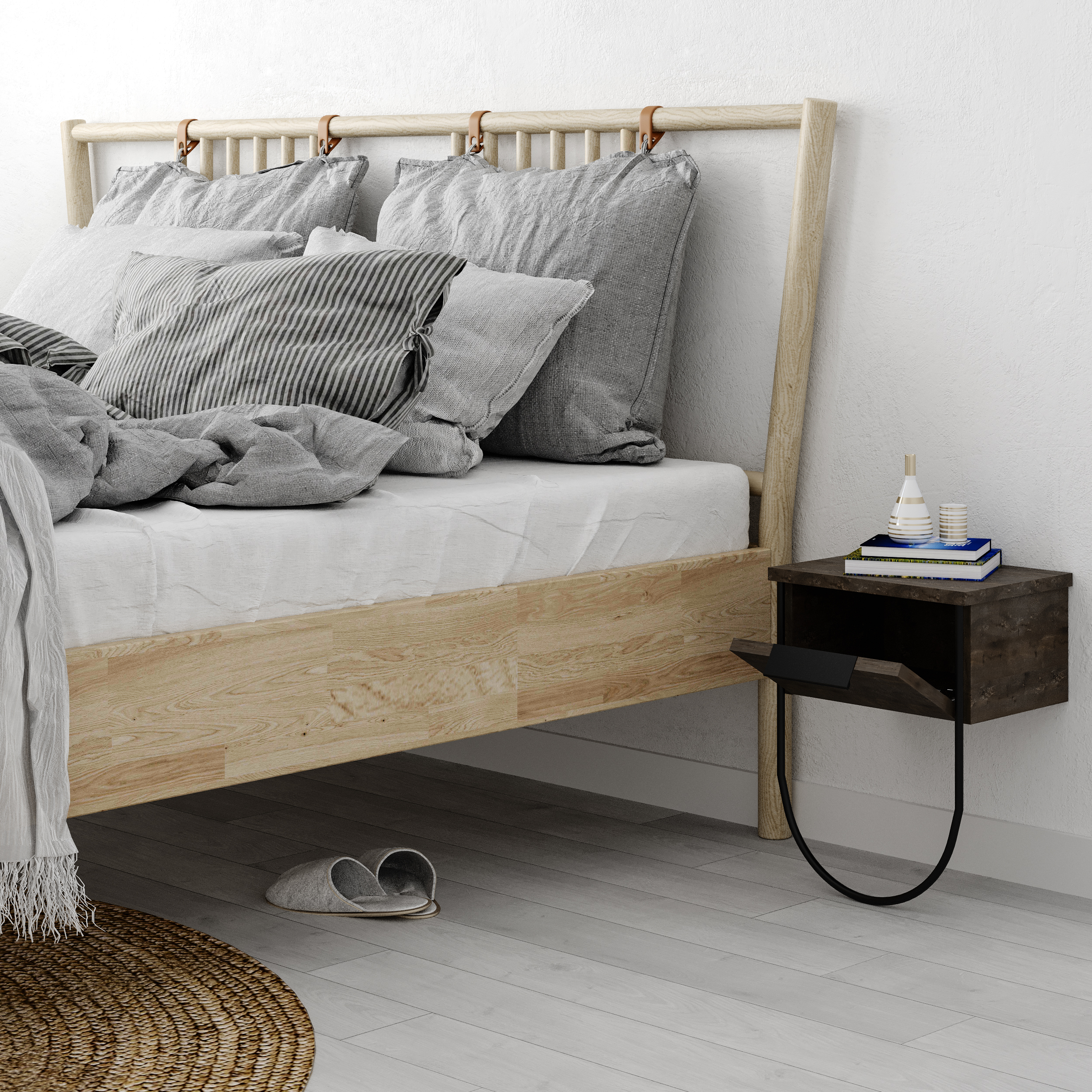 Norfolk Modern Bedside Table Dark Coffee 33cm WideThe Norfolk Modern Bedside Table brings both style and functionality to your home. Its wall-mounted design is ideal for small spaces and offers a versatile solution for your bedroom, living room, or home office.Compact & Stylish: Perfect for bedrooms or small spaces, measuring H 44 x W 33 x D 25 cm.Eco-Friendly Packaging: Ensures secure delivery with recyclable materials.Simple Assembly: Clear instructions make for a quick and enjoyable assembly process.High-Quality Materials: Made from engineered wood with a protective melamine finish; just wipe with a damp cloth for easy maintenance.Ample Storage: Features a built-in cabinet for hidden storage, keeping your room organized and clutter-free.Dimensions: H 44 x W 33 x D 25 cm – Weight: 4.75 kgEnhance your space with this modern and functional bedside table. The sleek design and compact size make it a perfect fit for any room. With multiple colour options available, you can easily find the perfect match for your decor. Whether you need a side table, end table, or a plant stand, the Norfolk Modern Bedside Table is a versatile addition to your home.Bedside tables are the unsung heroes of the bedroom, conveniently holding all your nighttime essentials close at hand. Our selection of bedside tables and cabinets offer various styles, making it simple to find one that complements your existing bedroom decor. Many feature doors or drawers, perfect for charging your phone and discreetly storing your favorite guilty pleasure reads.