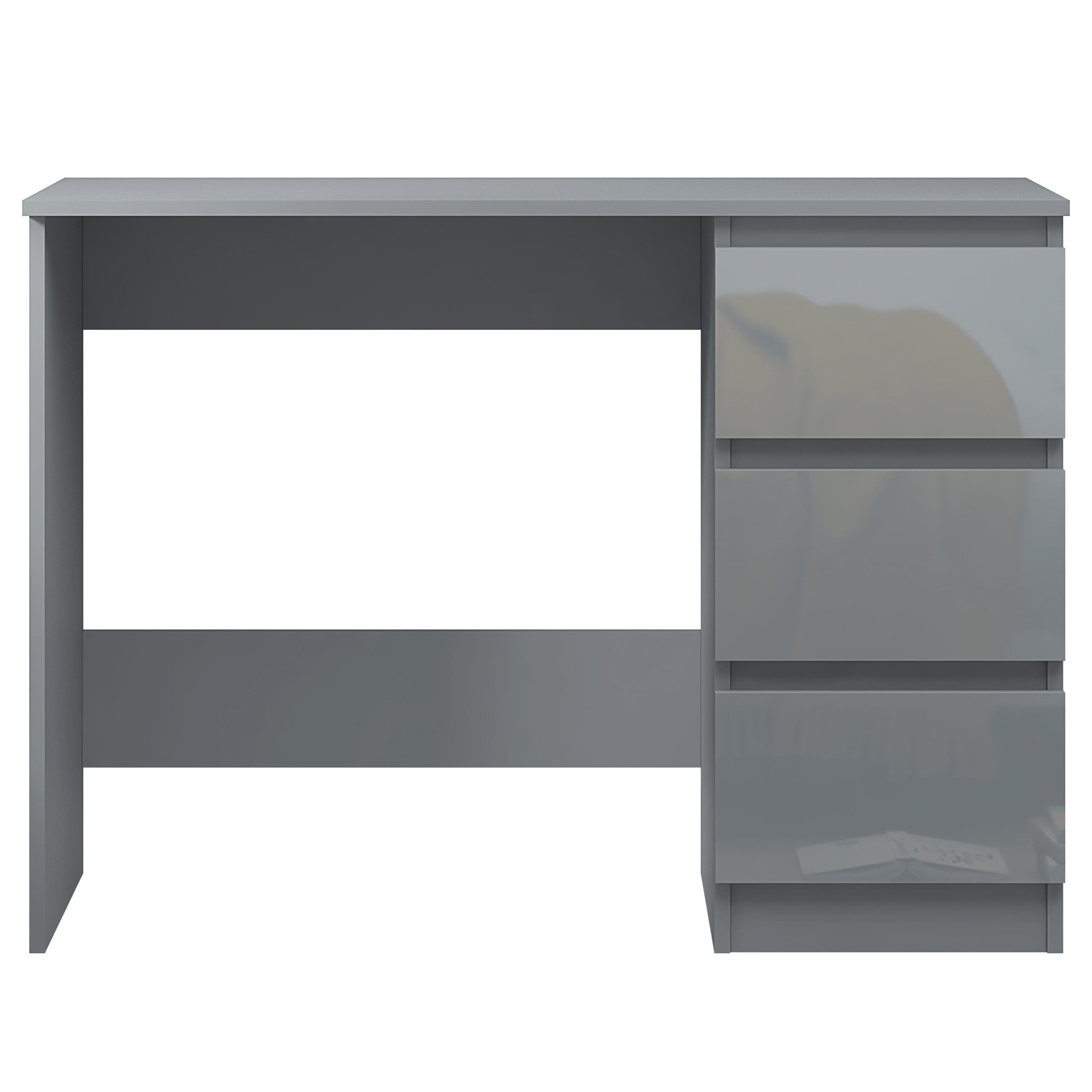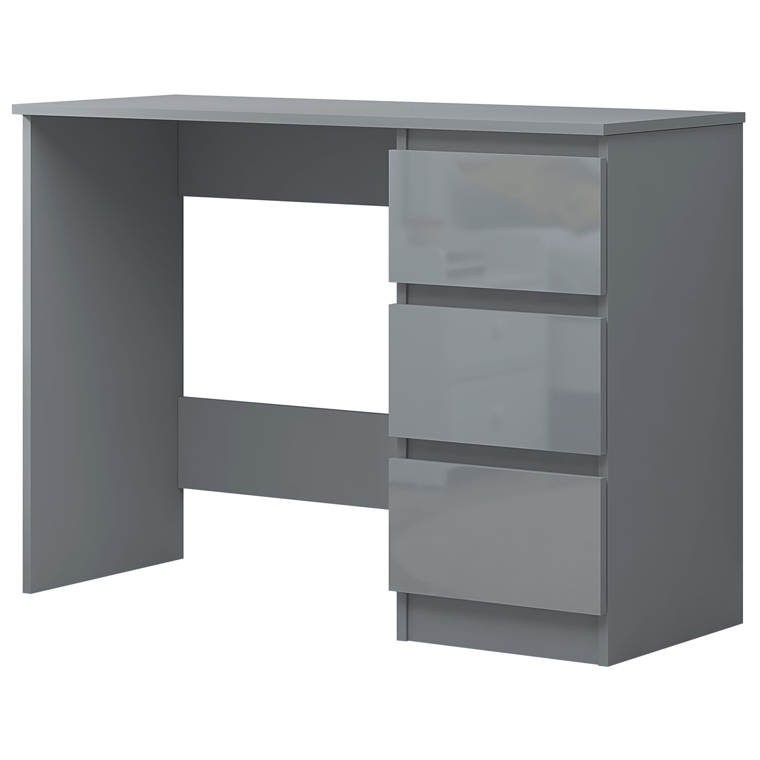Introducing the perfect fusion of functionality and style for your home – the Stora 3 Drawer Grey Gloss Dressing Table/Office Desk. Designed to cater to the dynamic needs of modern living, this desk stands out with its chic grey gloss drawer fronts contrasted against a matte frame, offering a contemporary aesthetic that effortlessly complements any decor. The desk’s multi-functional design makes it an ideal choice for those seeking a versatile piece of furniture that serves as a dressing table, study desk, or writing table, seamlessly blending into your home office or bedroom.