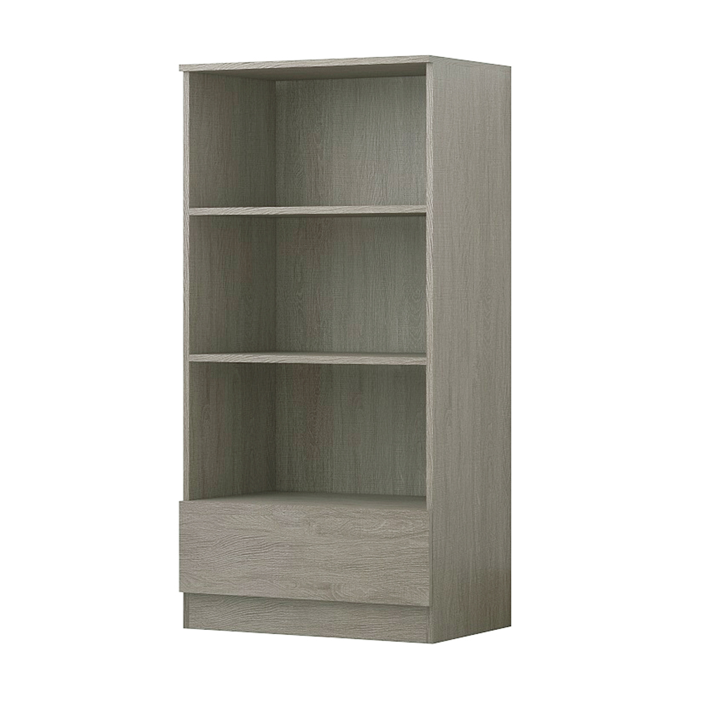 Stora 3 Shelf Bookcase 120cm With Bottom Drawer – Rustic Oak