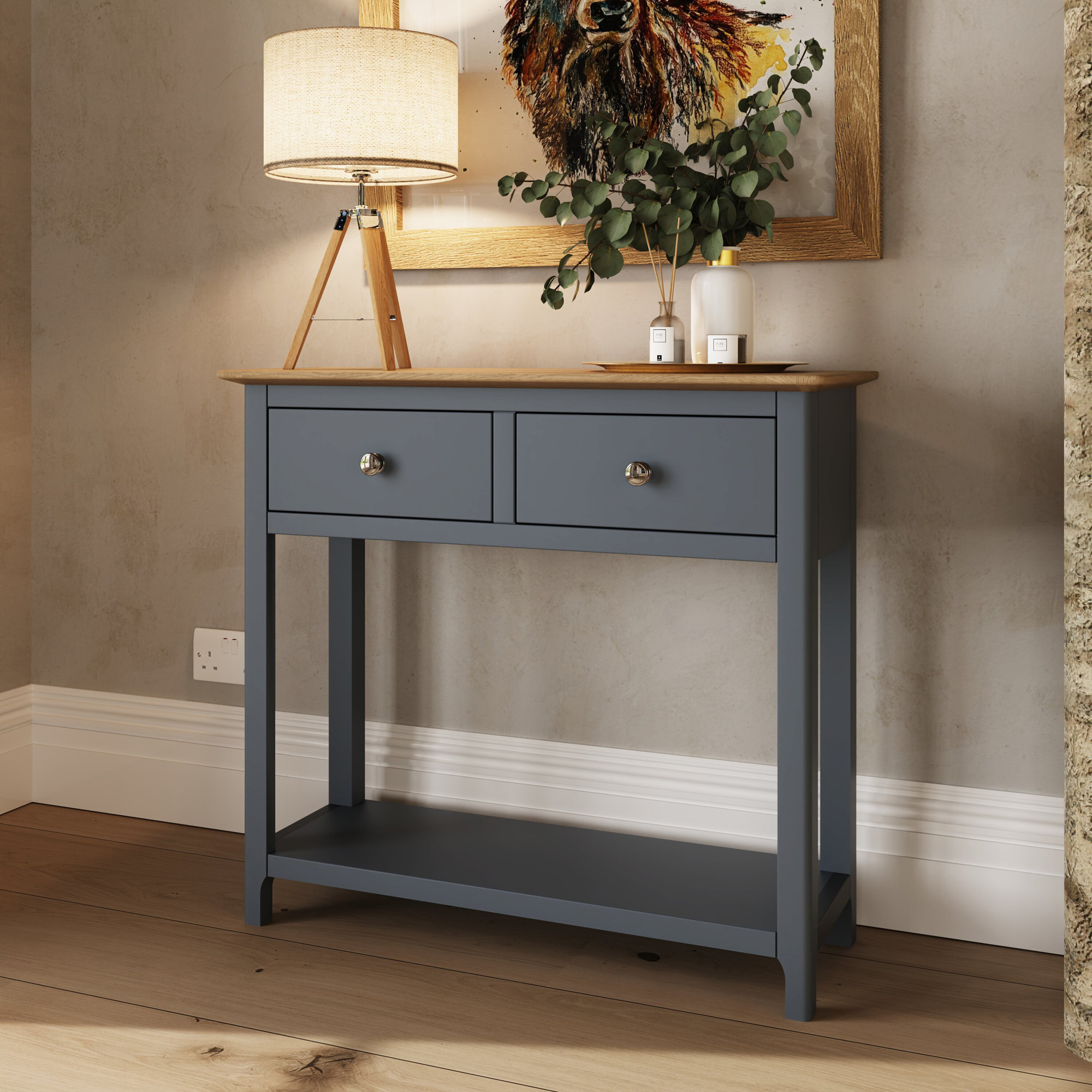 Taberno Oak 2 Drawer Console Hallway Table Graphite Blue