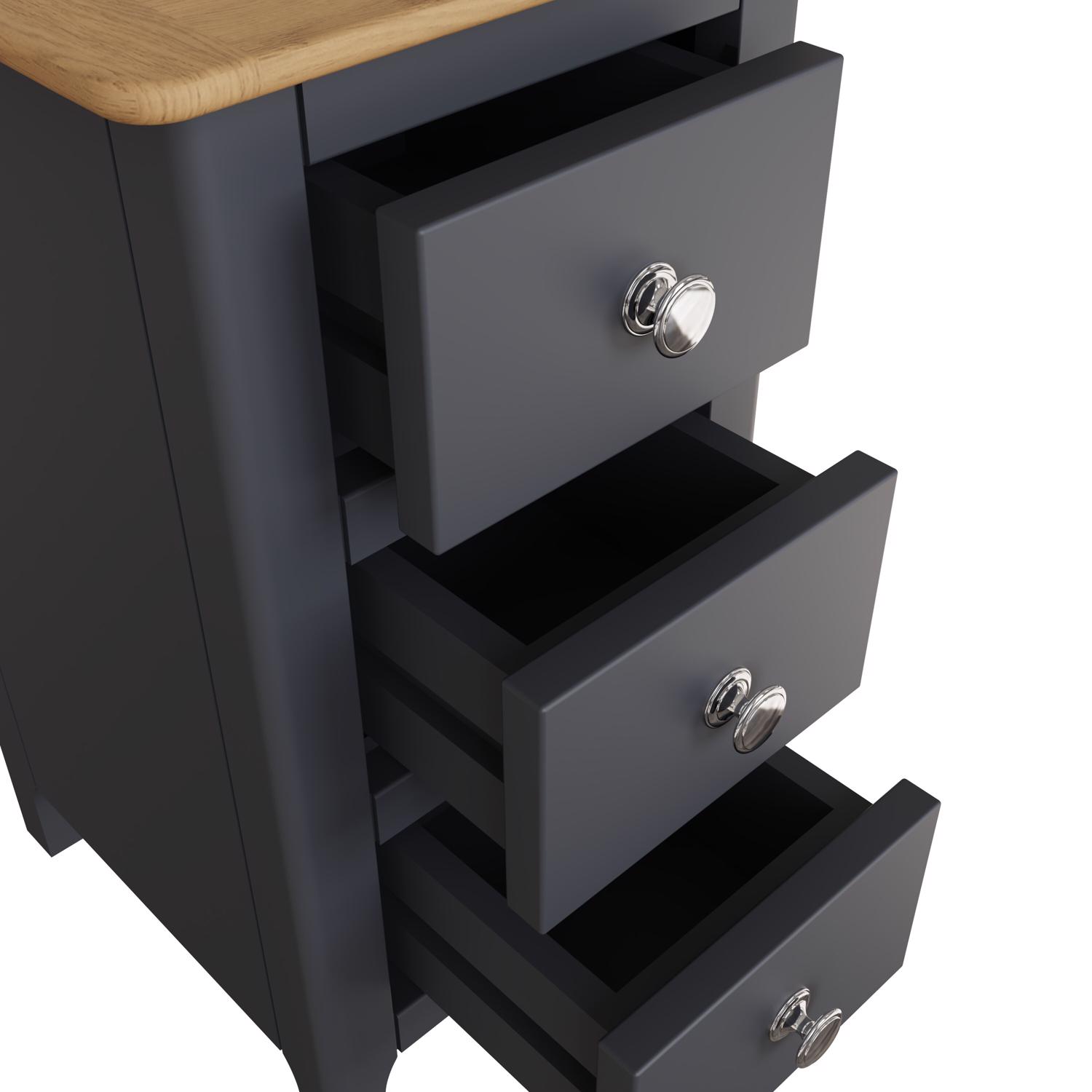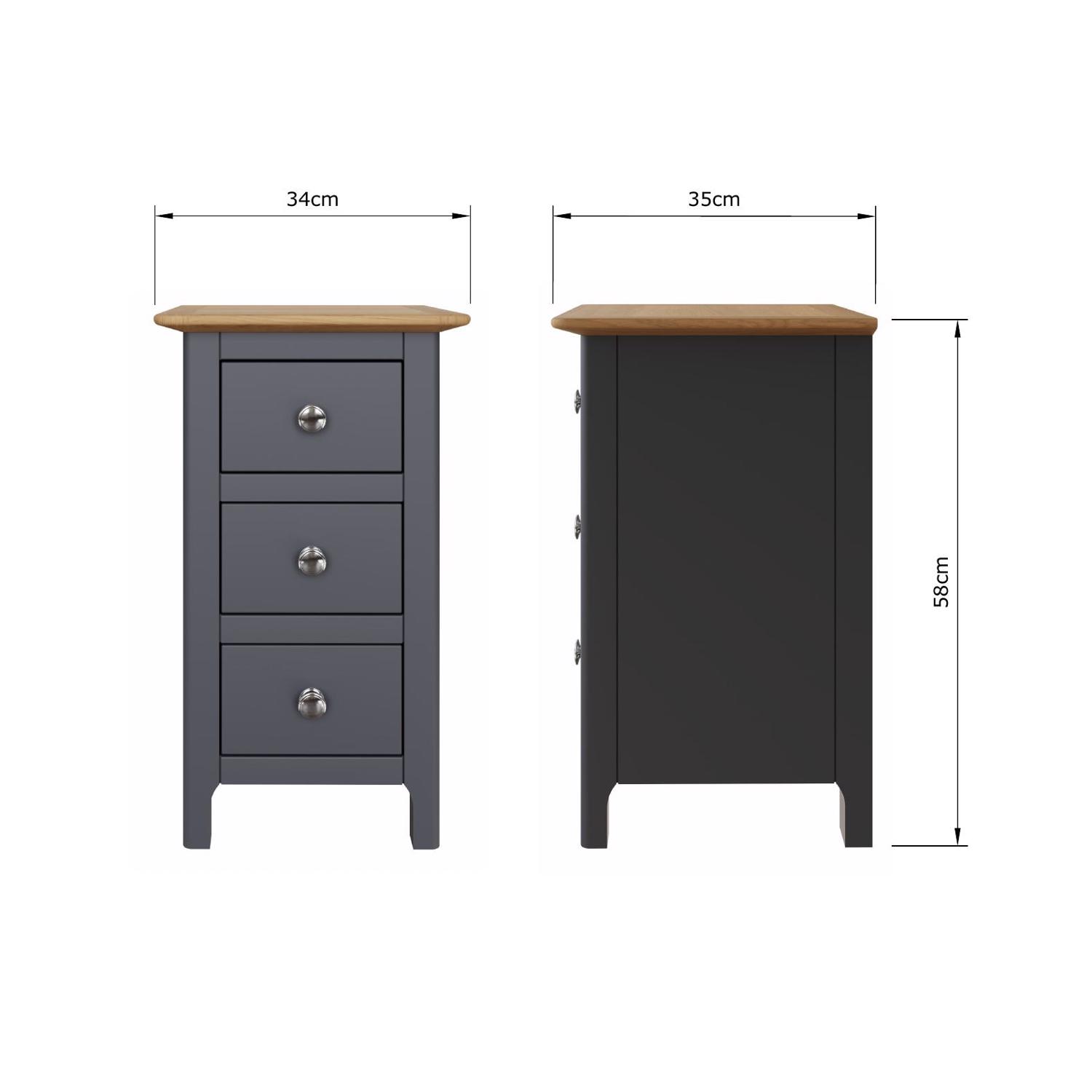 Taberno Oak 3 Drawer Bedside Table Nightstand Cabinet Graphite Blue
