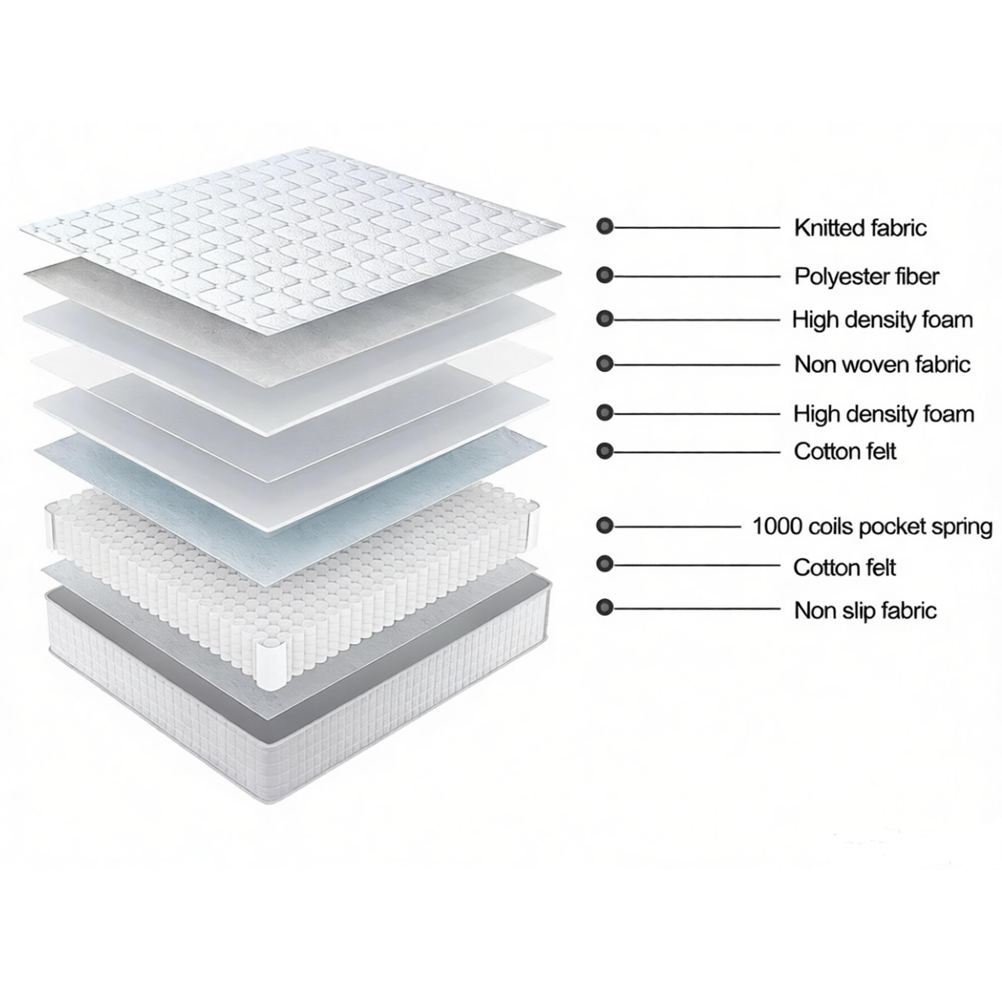 Tranquil Beds Siesta 1000 Pocket Spring Mattress – 22cm – 5ft King Size